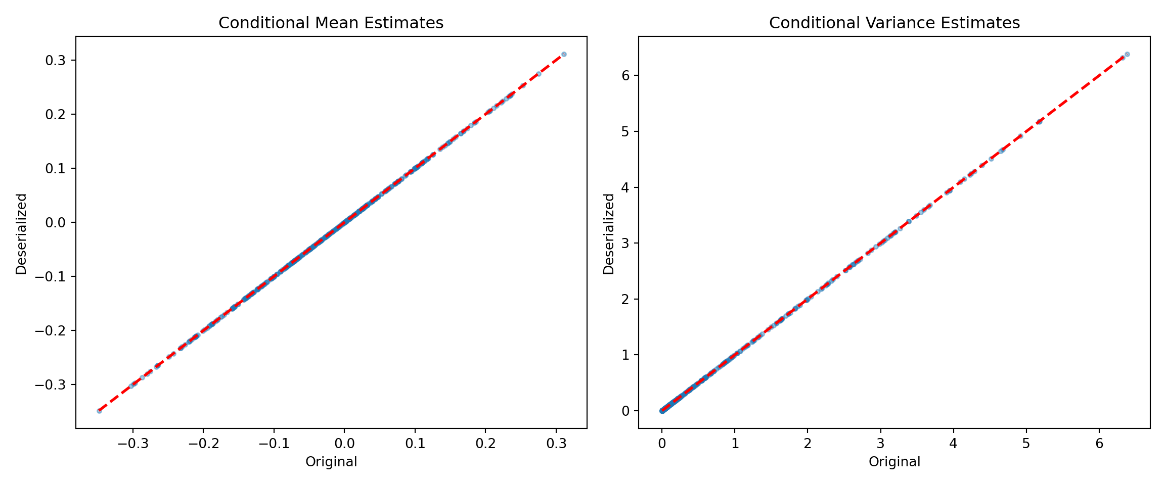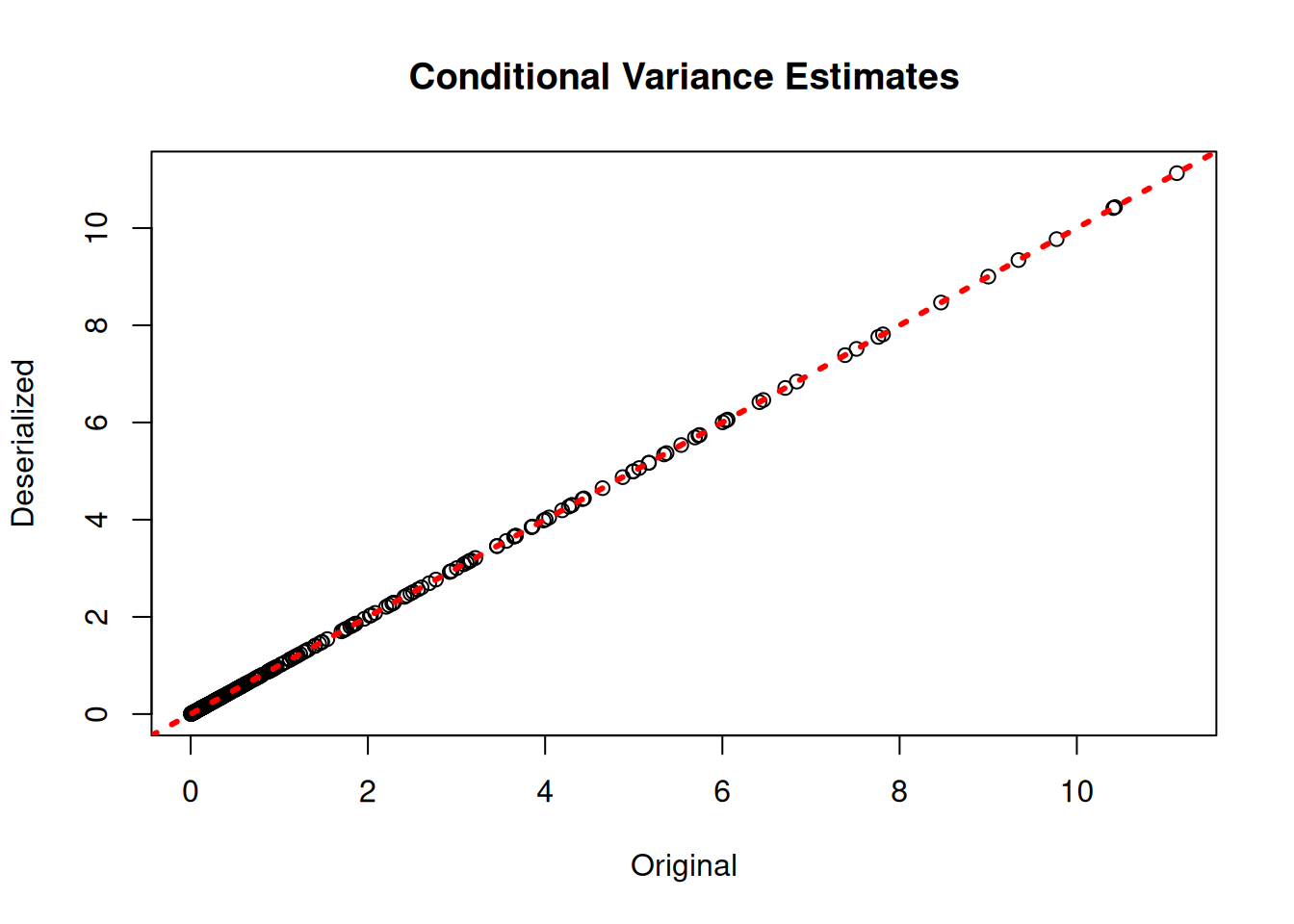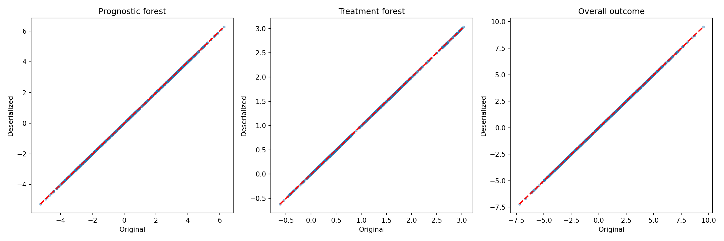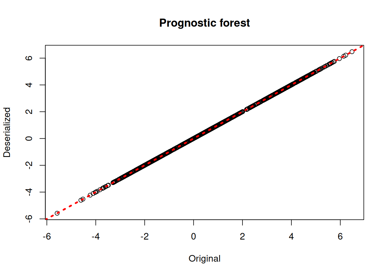 xlab = "Original", ylab = "Deserialized", main = "Prognostic forest")