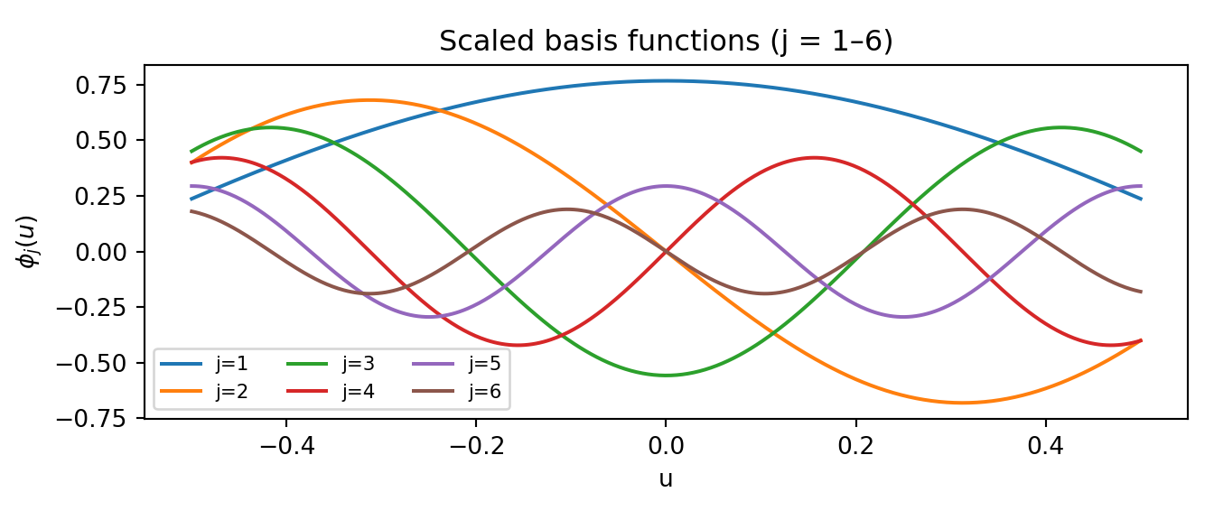 main = "Scaled basis functions (j = 1–6)"