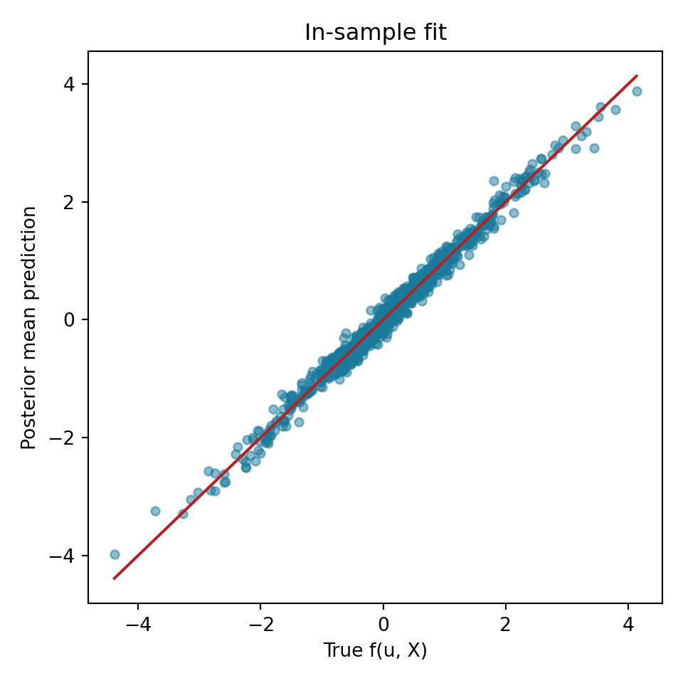 We compare the true outcomes to this model’s estimated conditional posterior mean